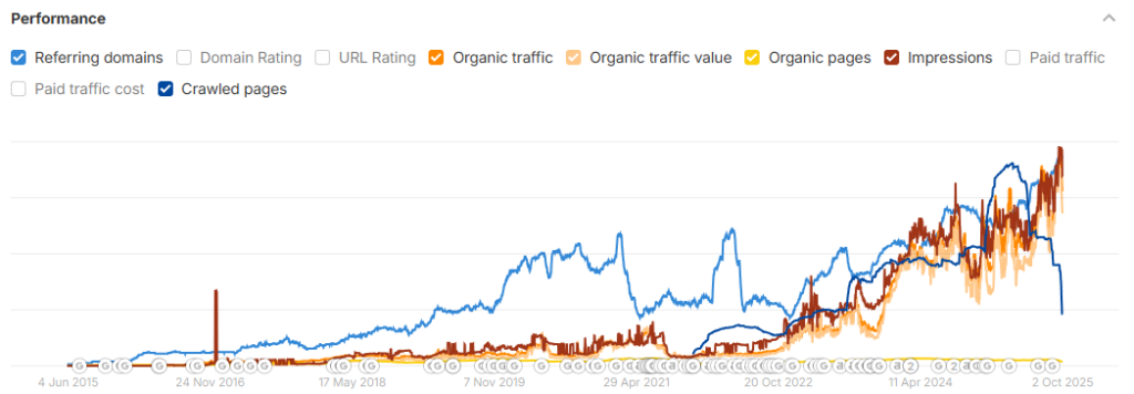 Adams Internet Marketing helped this client achieve consistent growth in domain strength, traffic, and impressions with optimized strategies.